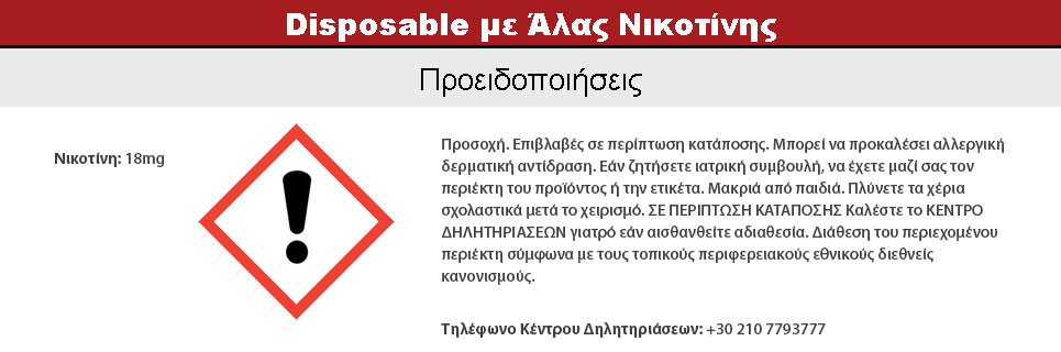 - Επίπεδο Νικοτίνης: Xωρίς νικοτίνη ή με 18mg/ml