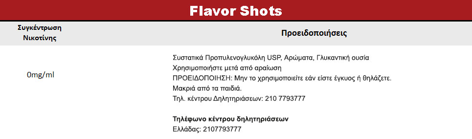 Συστατικά Προπυλενογλυκόλη USP, Αρώματα, Γλυκαντική ουσία