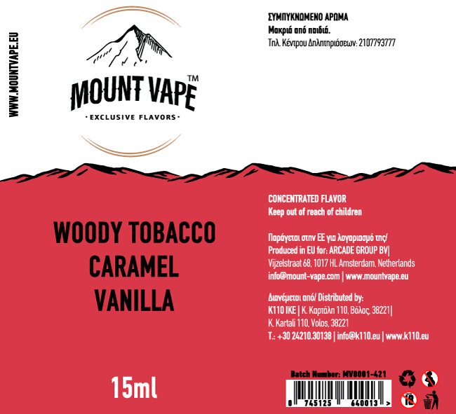 MOUNT VAPE WOODY TOBACCO CARAMEL VANILLA 15ML/60ML FLAVORSHOT