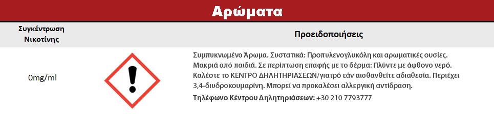 Συμπυκνωμένο Άρωμα. Συστατικά: Προπυλενογλυκόλη και αρωματικές ουσίες.