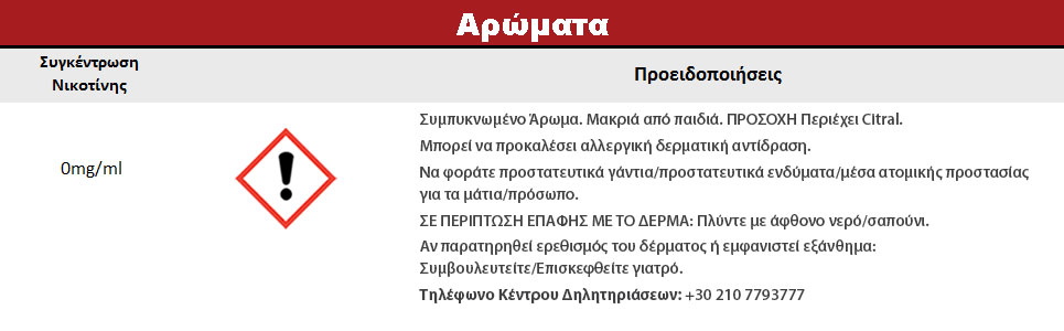 Συστατικά: Υπερσυμπυκνωμένο μίγμα αρωματικών ουσιών.