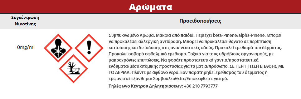 Περιέχει beta-Pinene/alpha-Pinene. Μπορεί να προκαλέσει αλλεργική αντίδραση.