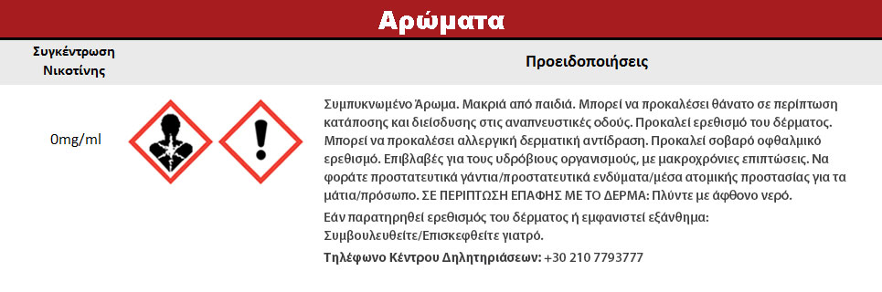Συστατικά: Συμπυκνωμένο μείγμα αρωμάτων, διαλυμένο σε προπυλενική γλυκόλη (FEMA 2940). Δεν περιέχει ζάχαρη και γλουτένη.
