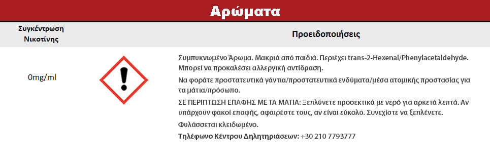 Περιέχει trans-2-Hexenal/Phenylacetaldehyde. Μπορεί να προκαλέσει αλλεργική αντίδραση.