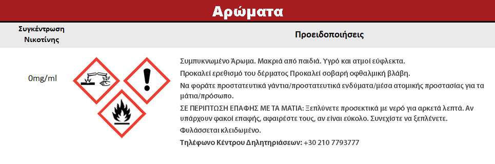 Συστατικά: Συμπυκνωμένο μείγμα αρωμάτων, διαλυμένο σε προπυλενική γλυκόλη (FEMA 2940). Δεν περιέχει ζάχαρη και γλουτένη.