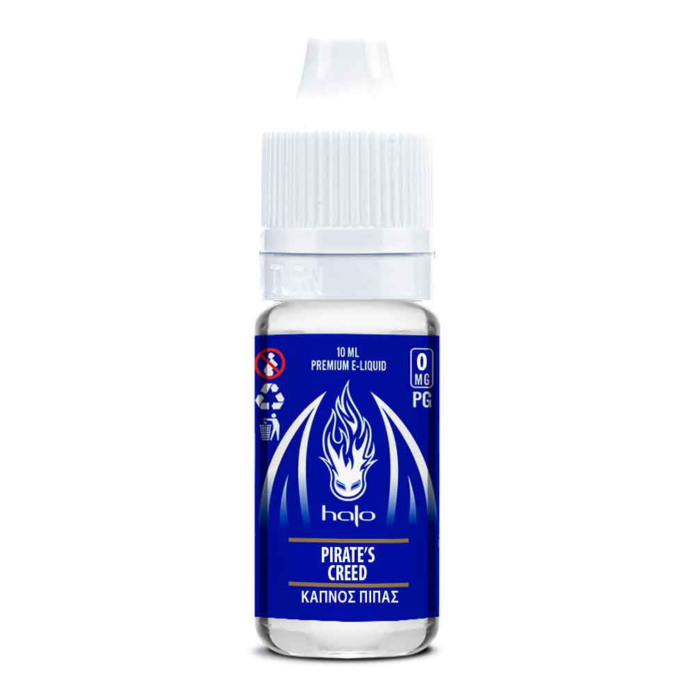 Το Halo Pirate's Creed 10ml είναι μια προσεγμένη βάση από Βιρτζίνια και Oriental, που αναμιγνύεται με μια νότα μπαχαρικών Latakia.