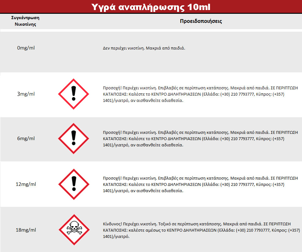 Επίπεδα νικοτίνης: Χωρίς Νικοτίνη, 3mg, 6mg, 12mg, 18mg