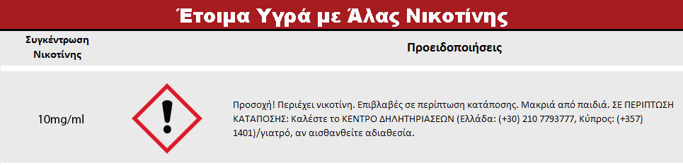 - Περιεκτικότητα σε νικοτίνη (Nic.Salt) 10mg.